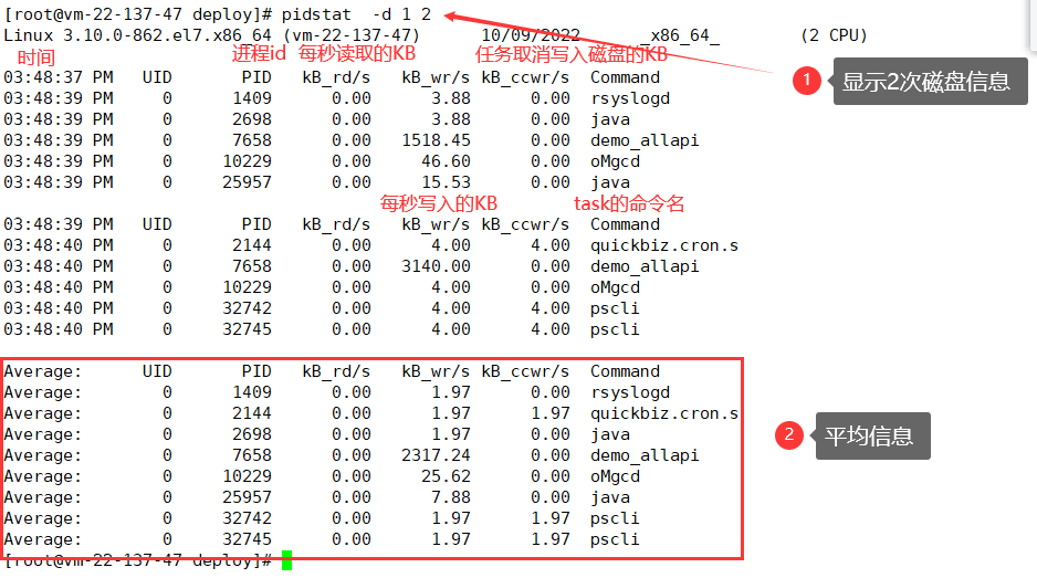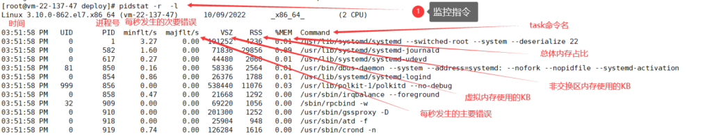 pidstat -d 1 -l: 显示磁盘io使用情况,并显示详细指令