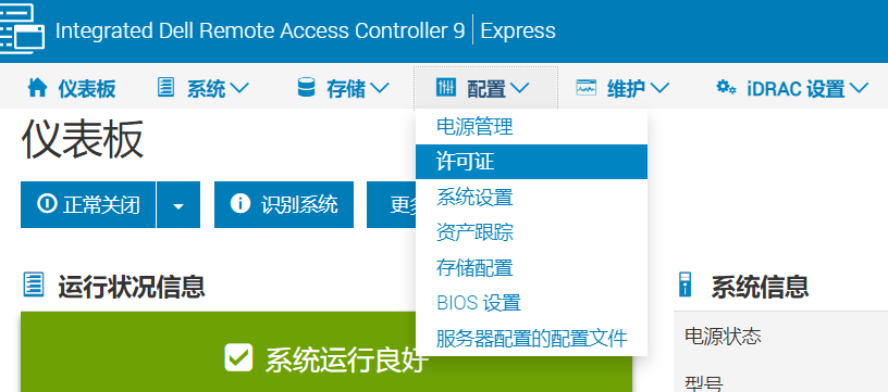 IDRAC9授权导入 On 2022年5月10日By 去哪儿 1、DELL官方申请购买授权 2、登录IDRACE,默认用户密码root/calvin 3、配置选项中选择【许可证】 4、选择导入,导入的文件格式XML