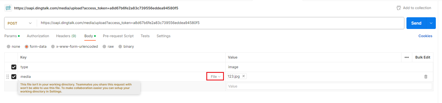 上传文件到钉钉