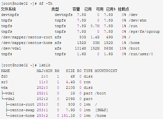 通过df-h发现,根目录有50G,home目录有152G。想分出132G给根目录