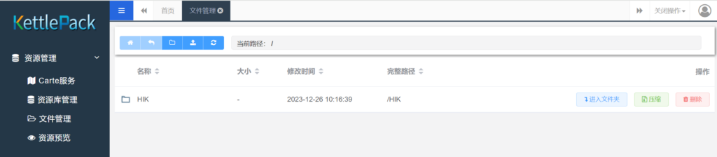 2、上传资源文件,该文件从创建的PDI复制上传到kettlepack