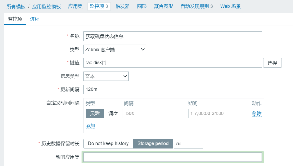 4、创建监控项,调用rac.disk[*], /u01/script/oracle_asm.sh
