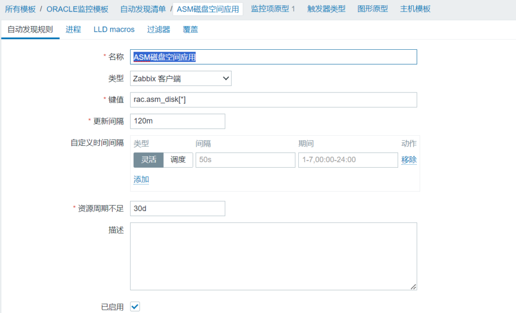 5、创建自动发现规则,调用rac.asm_disk[*], /u01/script/oracle_disk.sh