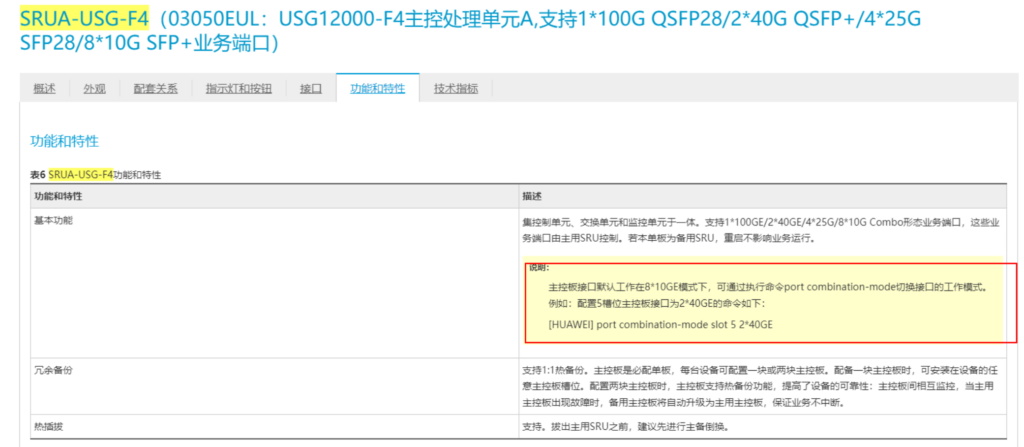 USG12004 主控板卡40G接口无法识别 On 2024年7月21日By 去哪儿 默认情况下只工作在10*10G接口,如果要识别到40G需要用命令切换,PORT COMBINATION-MODE SLOT 5 2*40GE,但切换后10G模式不能使用,默认只支持一种组合方式实现