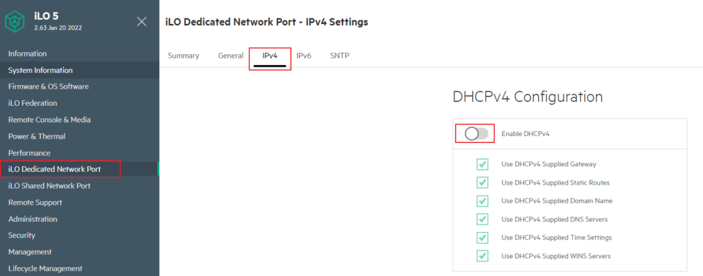 4、输入固定IP地址,并应用。应用完成后会有需要重启ilo服务的按钮显示,此时点击后生效。
