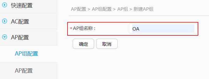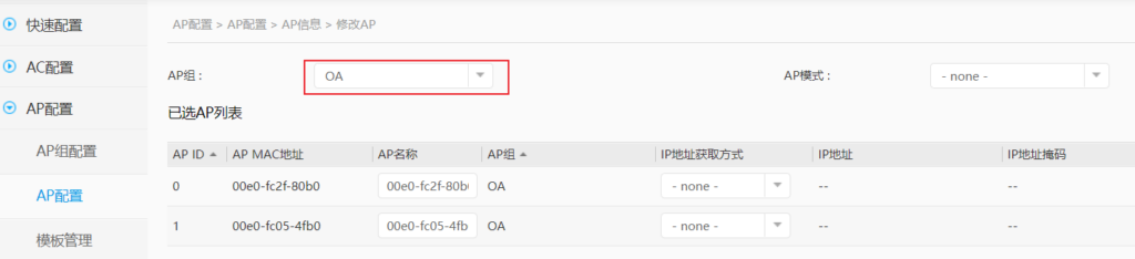 3.2、配置AP组,命名OA,用于管理所有的无线AP,纳入改组