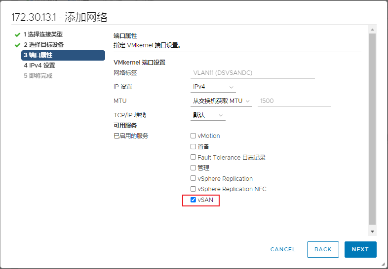 2.3、配置VMkernel适配器,每台VSAN主机都需要配置