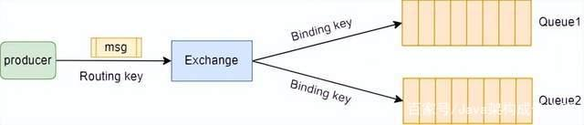在介绍这4种类型的Exchange之前,先来了解一下另外一个比较重要的概念:Routing key,翻译成中文就是路由键。当我们创建好Exchange和Queue之后,需要使用Routing key(通常叫作Binding key)将它们绑定起来,producer在向Exchange发送一条消息的时候,必须指定一个Routing key,然后Exchange接收到这条消息之后,会解析Routing key,然后根据Exchange和Queue的绑定规则,将消息分发到符合规则的Queue中。