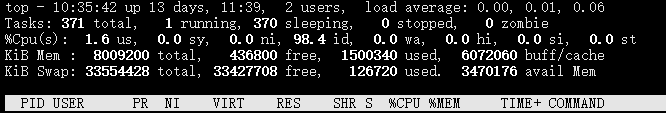 top命令监控系统状况,CPU,内存使用情况,类似WINEOWS任务管理器